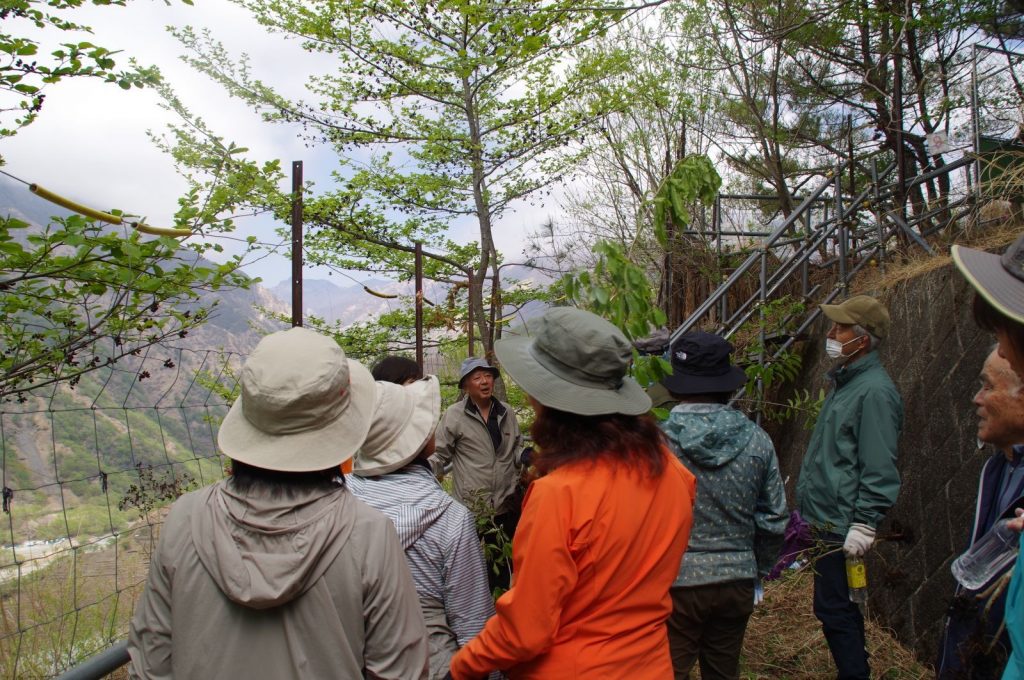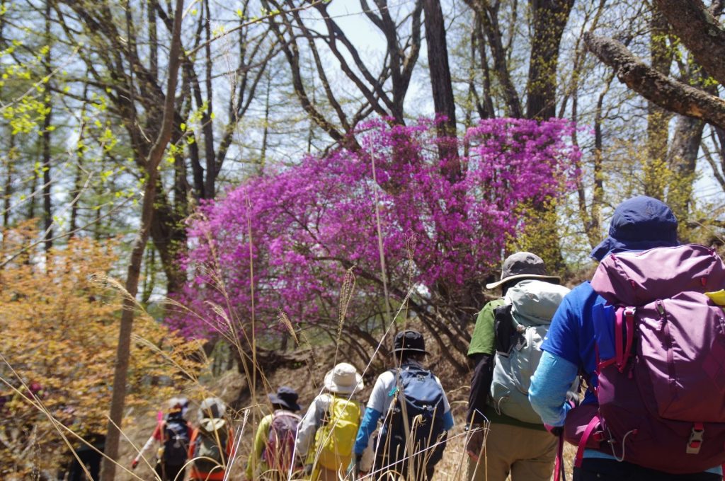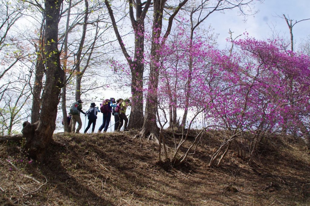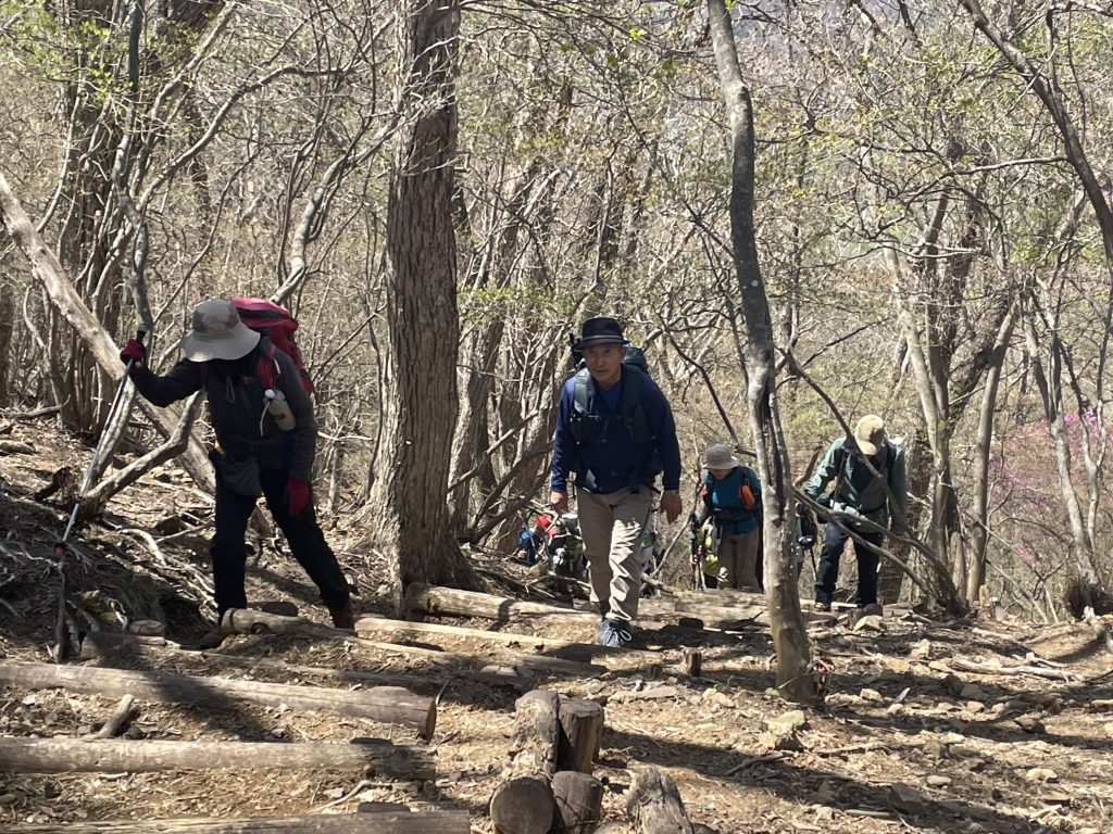 予定より大分早く植樹デーが終わり、備前楯山への登頂に向かいます。行程中は、去年ほどの開花を見ることは出来ませんでした。1100mを超えるあたりからようやくミツバツツジを見ることが出来ました。今年は暑かったのでアカヤシオは終わってしまったみたいです。でも元気なミツバツツジは私達を勇気づけてくれました。